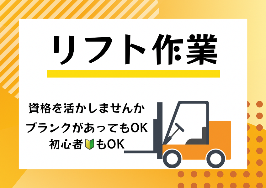 出ました新着リフト案件/フォークリフトでの出荷作業/未経験者も大歓迎 No.421-010 SST