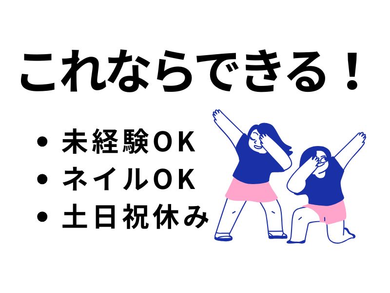 初心者歓迎社会保険完備駅近土日休み空調完備体を動かす仕事 -